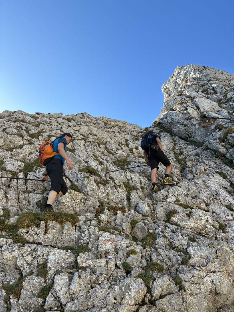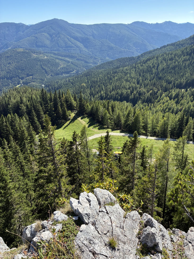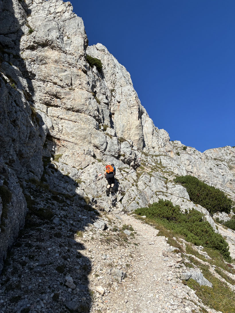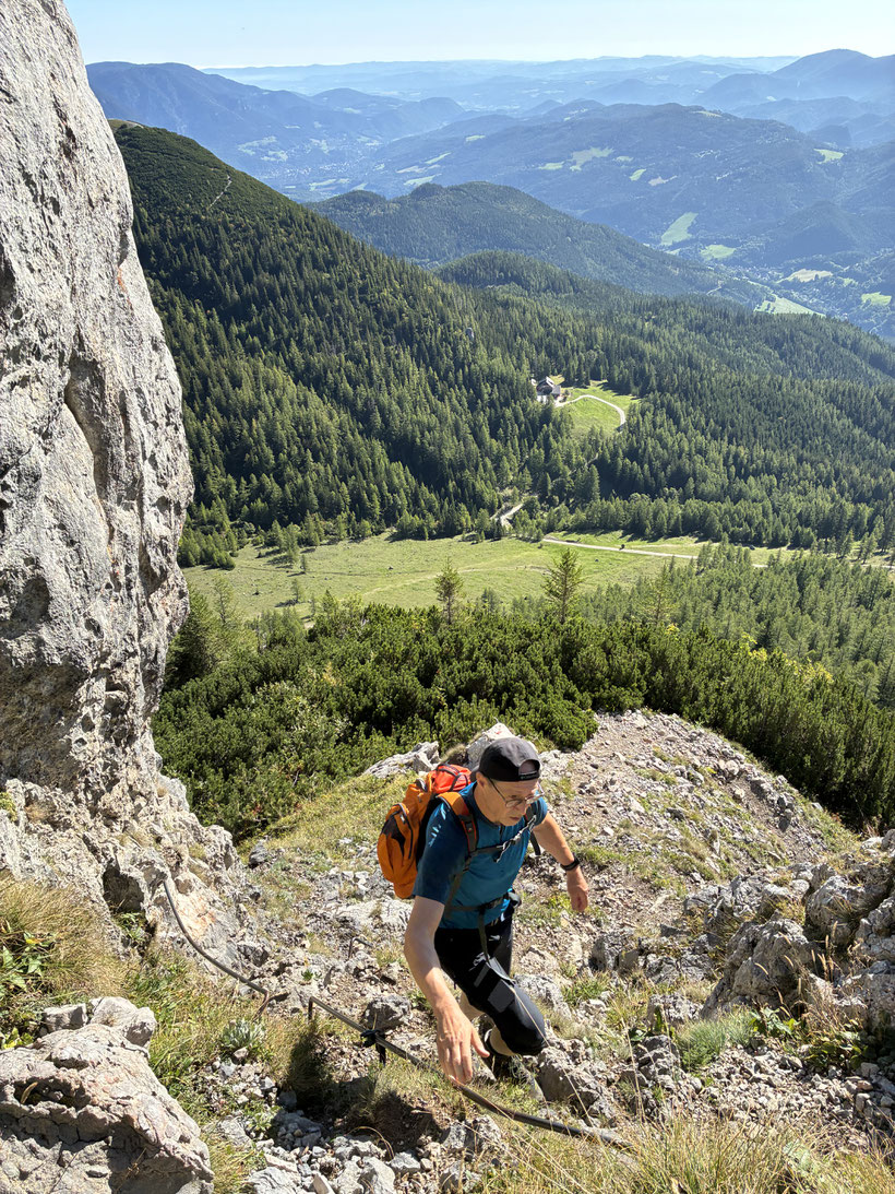 schöner Blick zurück zu den Felsen des Karl Kantner Steigs