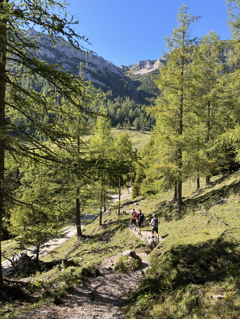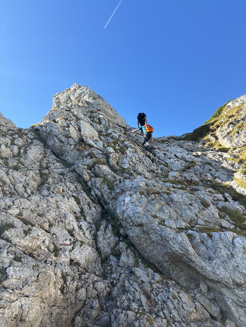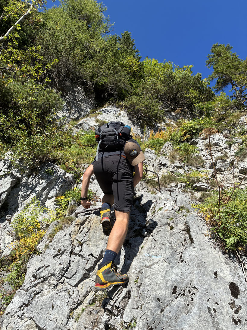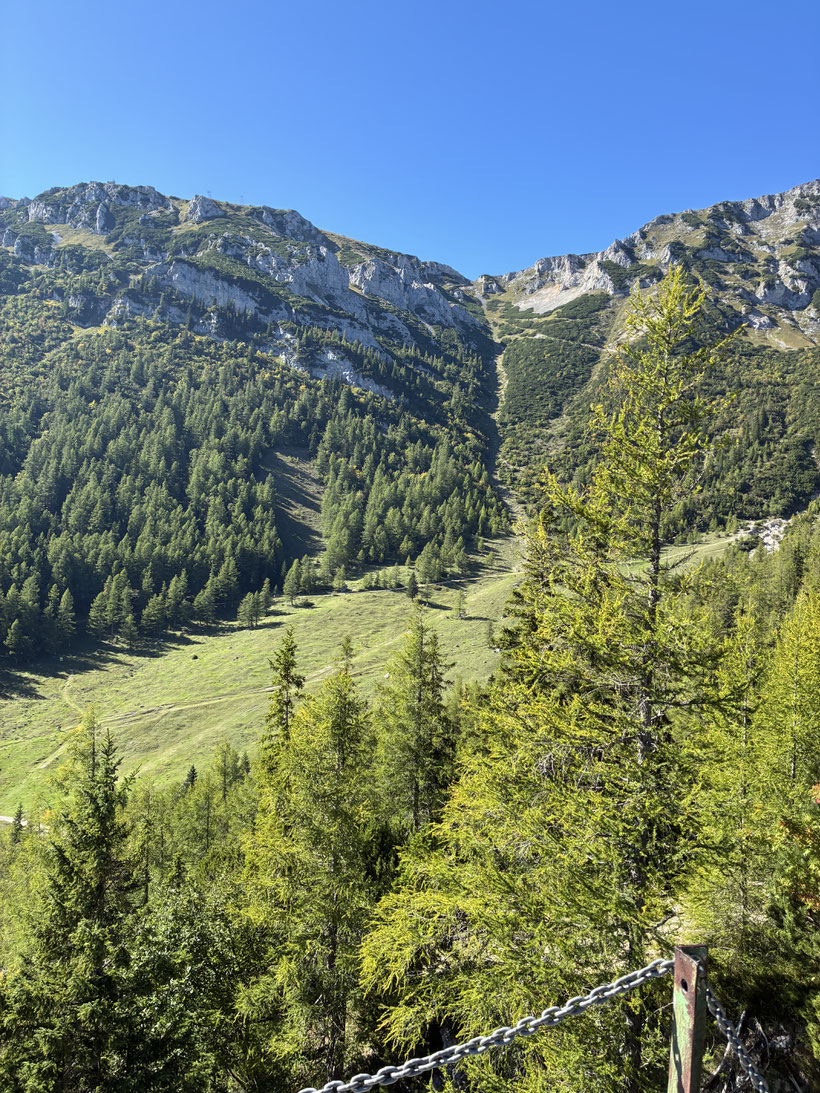 schöner Blick zurück zu den Felsen des Karl Kantner Steigs