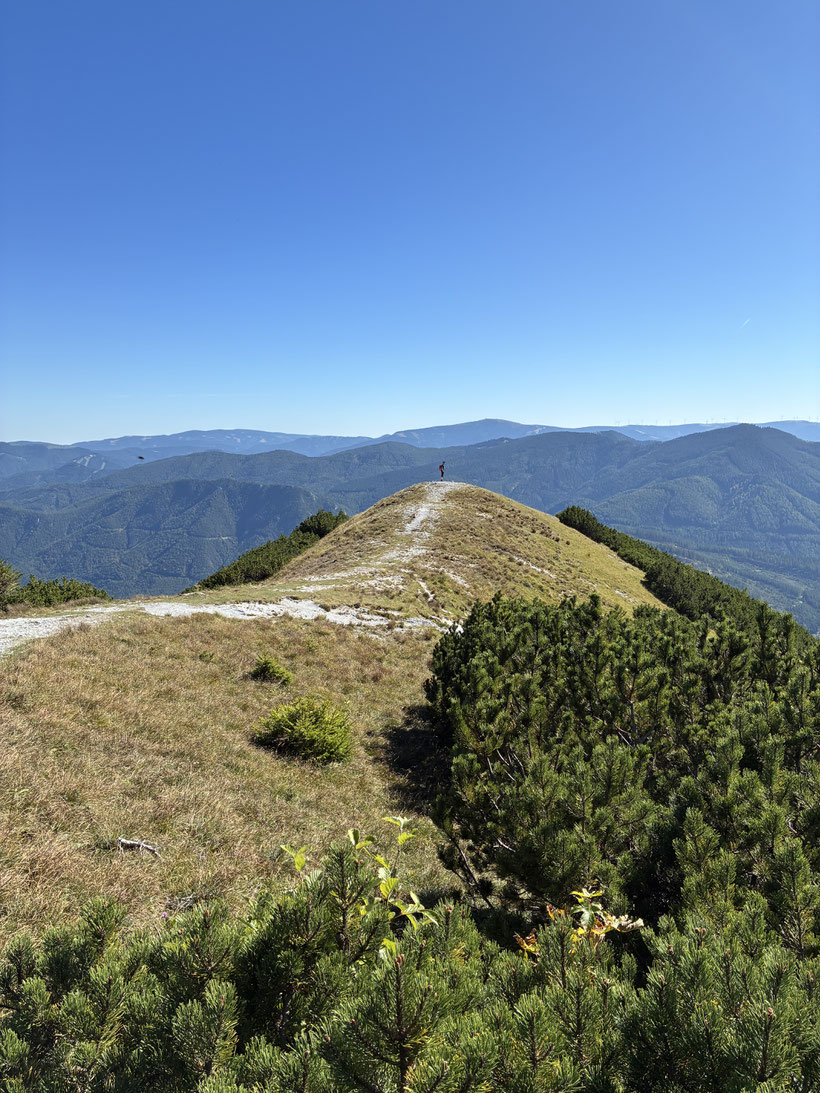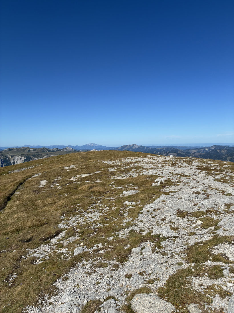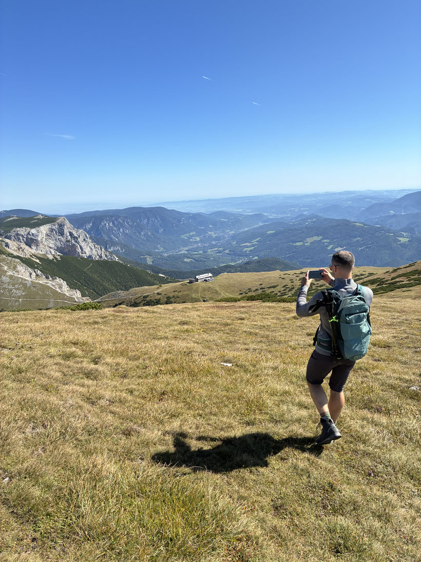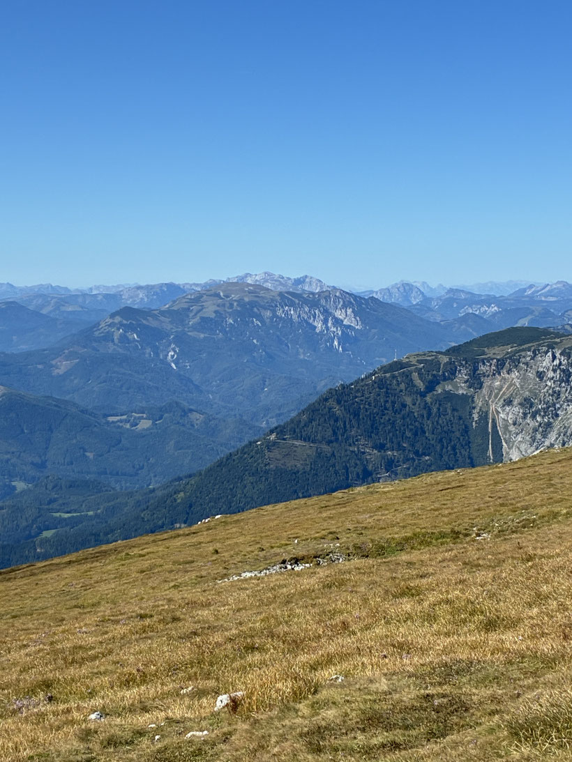 Der Blick schweift über die Schneealpe zum Hochschwab