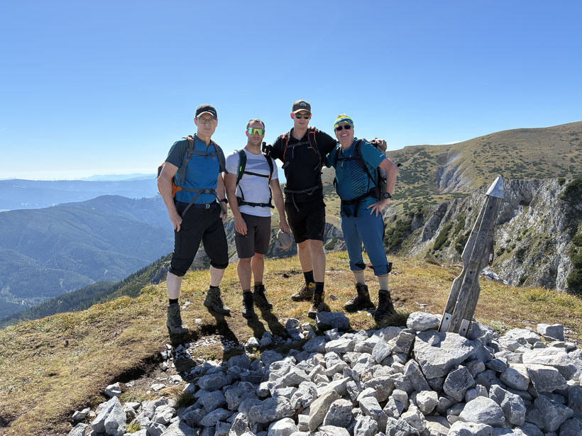 nach genau 2,5 Std. stehen wir (Peter, Michi und ich) am Gipfel der Rax, auf der Heukuppe (2007m)